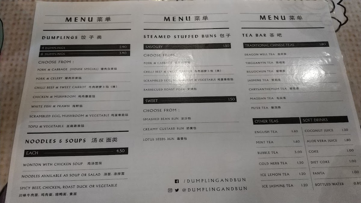 The menu boasts a variety of dumplings, with options for both fried and boiled, starting at just £4.50 for five pieces. Highlights include the flavorful chili beef and classic pork and cabbage dumplings, which customers rave about for their freshness and taste. For those craving something more, the spiced chicken and vegetable noodle soups are perfect for a chilly day.